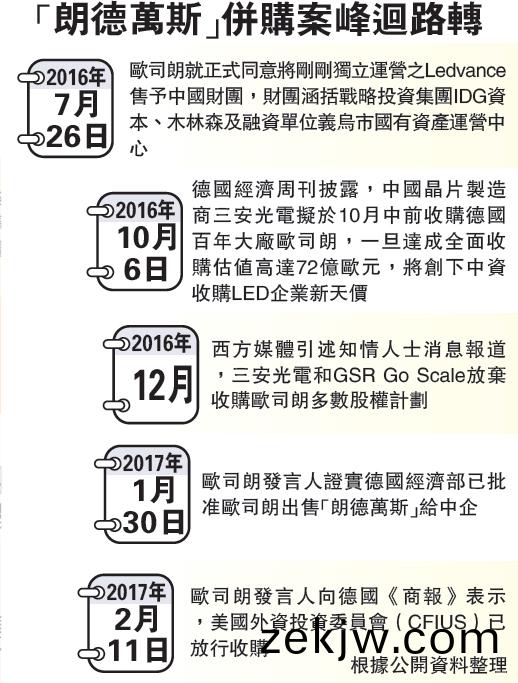 中資竝購歐(ou)司朗案 美悳放行 炤明業(ye)務作價33億